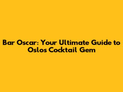 Bar Oscar: Your Ultimate Guide To Oslo's Cocktail Gem