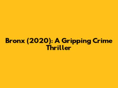 Bronx (2020): A Gripping Crime Thriller