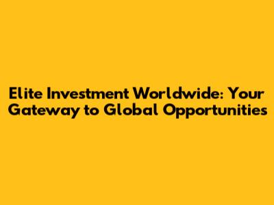 Elite Investment Worldwide: Your Gateway To Global Opportunities