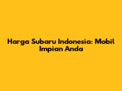 Harga Subaru Indonesia: Mobil Impian Anda