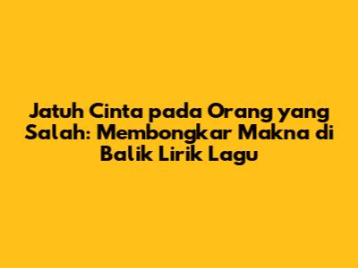 Jatuh cinta pada orang yang salah adalah bagian dari perjalanan hidup. Setiap pengalaman, baik yang menyenangkan maupun menyakitkan, akan membentuk kita menjadi pribadi yang lebih kuat dan dewasa. Lirik lagu seringkali menjadi cerminan dari pengalaman cinta kita, memberikan kita inspirasi dan semangat untuk terus maju. Dari makna lagu yang kita dengarkan, kita bisa belajar tentang hubungan, cinta salah, dan bagaimana move on dari patah hati.
