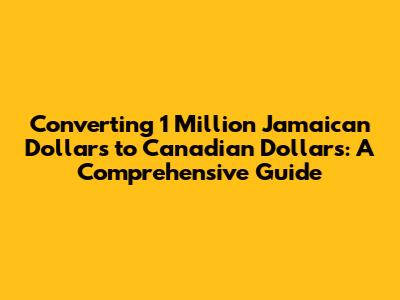 Hey guys! Ever wondered about converting 1 million Jamaican dollars to Canadian dollars? Well, you're in the right place! This guide is designed to break down everything you need to know about the JMD to CAD conversion, including the current exchange rates, factors that influence these rates, and practical tips for making the conversion. Whether you're planning a trip, managing finances, or just curious, understanding how to convert Jamaican dollars to Canadian dollars is super useful. Let's dive in and make sense of this, shall we?