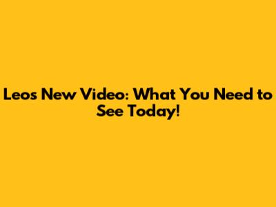 Leo's Latest Video: What You Need To See Today!