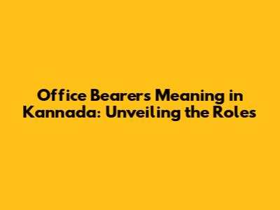 Office Bearers In Kannada: Meaning And Significance