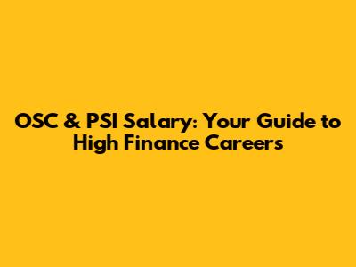 OSC & PSI Salary: Your Guide To High Finance Careers