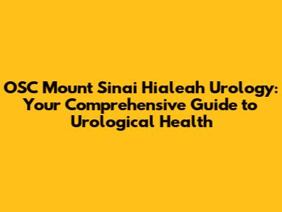OSC Mount Sinai Hialeah Urology: Your Guide To Urological Health