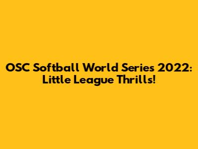 OSC Softball World Series 2022: Little League Thrills!