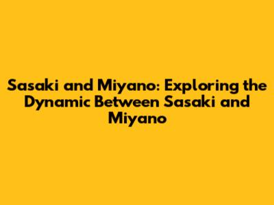 Sasaki And Miyano: Exploring Sasaki Vs Miyano Dynamic