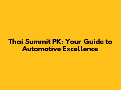 Thai Summit PK: Your Guide To Automotive Excellence