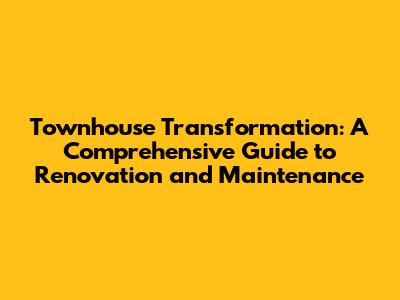Townhouse Transformation: A Comprehensive Guide