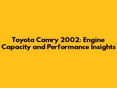 Hey everyone! Today, we're diving deep into the Toyota Camry 2002 – a car that's still cruising on roads worldwide. We're going to explore the engine capacity of the 2002 Camry, providing you with a complete overview of its engine specs, performance, and more. Whether you're a current owner, a potential buyer, or just a car enthusiast, this guide has something for you. Buckle up, and let's get started!