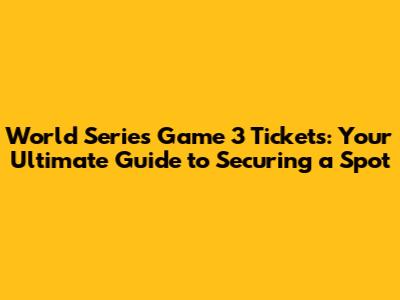 Hey sports fanatics! Are you ready for the World Series Game 3? It's the moment we've all been waiting for – the clash of titans, the nail-biting finishes, and the electric atmosphere that only the World Series can deliver. Getting your hands on World Series Game 3 tickets is a mission, but fear not, because this guide is your playbook to navigating the ticket landscape. Whether you're a seasoned attendee or a first-timer, this comprehensive guide will walk you through everything you need to know, from understanding the ticket market to securing the best seats in the house. Let's dive into the world of World Series tickets and get you closer to the action!