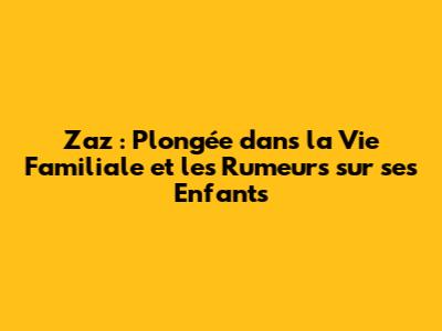 Salut les amis ! On va plonger dans le monde fascinant de Zaz, cette artiste incroyable dont la musique nous fait vibrer. Mais aujourd'hui, on ne va pas seulement parler de ses chansons entraînantes. On va s'intéresser à un aspect plus personnel de sa vie : sa famille et, plus précisément, ses enfants. Alors, est-ce que Zaz a des enfants ? C'est la question que beaucoup se posent, et on va tenter d'y répondre de la manière la plus complète possible. On va décortiquer les rumeurs, les informations disponibles, et essayer de démêler le vrai du faux. Préparez-vous à une exploration en profondeur de la vie de famille de cette chanteuse talentueuse et mystérieuse. Accrochez-vous, ça va être passionnant !